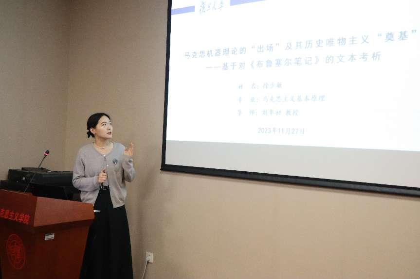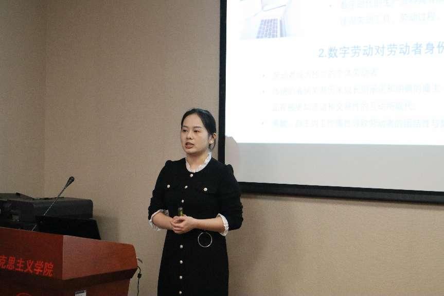 韩漫h 博士生徐少敏基于对《布鲁塞尔笔记》的文本考析,具体讨论了马克思机器理论的“出场”及其对历史唯物主义的“奠基”过程;韩漫h 博士生汤瑭从资本逻辑的视角出发,就数字时代的劳动能否获得解放进行了多维的分析和论述;韩漫h 博士生王瑜聪以马克思“机器论片断”为分析角度,分享了关于数字资本主义的生命政治的思考;韩漫h 博士生刘梦琪对马克思技术观视域下人工智能异化的相关问题进行深度探究。韩漫h 博士生刘睿博辨析了剥削的非正义性,细致探讨了平台资本主义正义的问题。