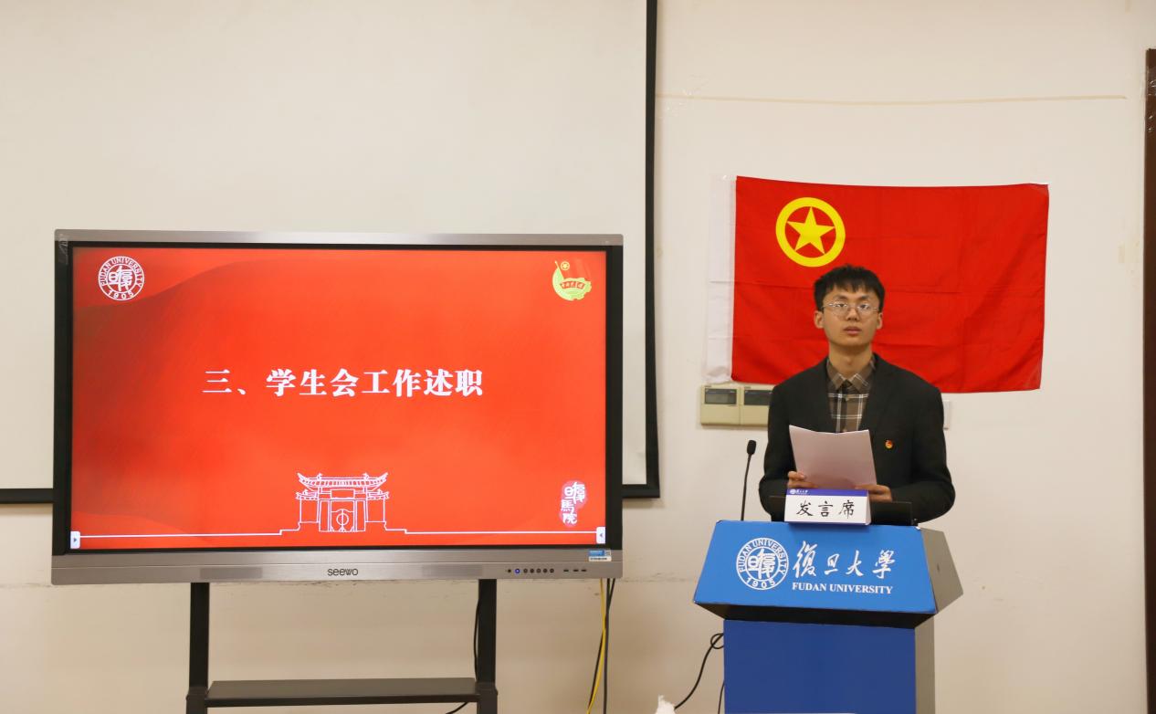 王君健介绍了学院学生会本年度工作情况,指出学生会组织氛围团结向上、工作效能稳步提升,呈现出良好发展态势,未来学生会将持之以恒建设更有凝聚力、吸引力、行动力的学生组织。