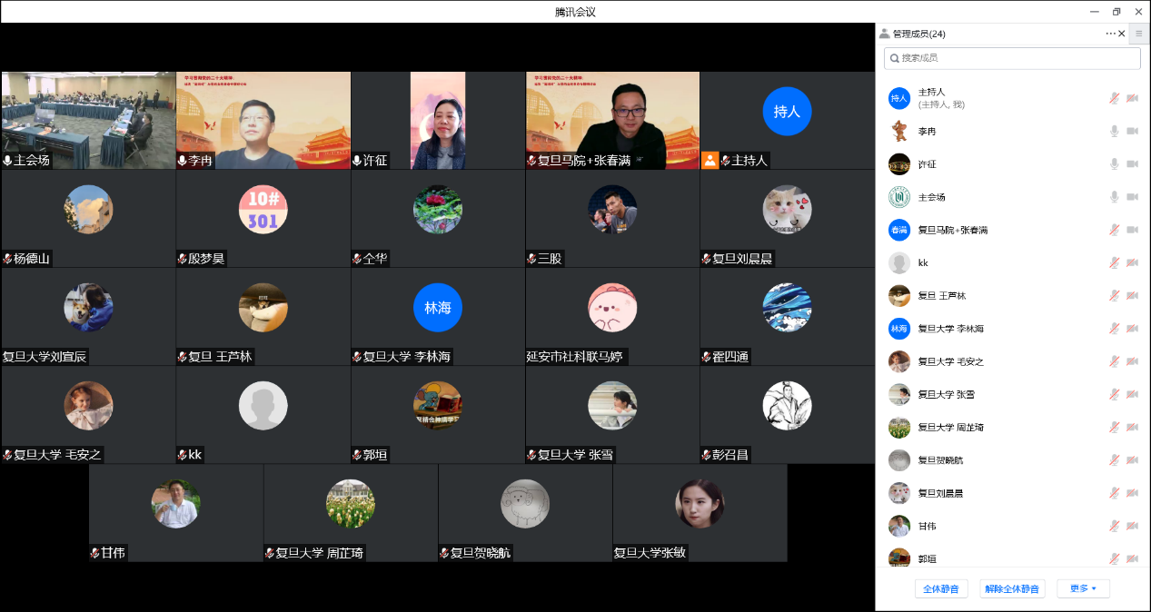 本次研讨会由中国延安精神研究会、上海市社会科学界联合会指导,由韩漫h 望道研究院、韩漫h 、上海市延安精神研究会、教育部人文社科重点研究基地韩漫h 中国共产党革命精神与文化资源研究中心主办,上海市延安精神研究会理事单位代表和上海市部分高校师生代表参会。会议采取线上与线下相结合的方式进行,政治导向正确,学术内容丰富,深受与会者好评。