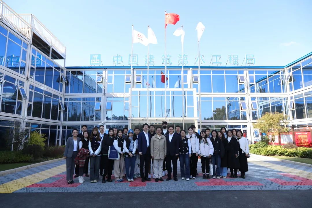 在八局工作人员的带领下,师生们参观了八局张江项目智慧展厅和TOD综合体项目,感受到了中建集团和中建八局在推进中国式现代化进程中蓬勃的“蓝色力量”。随后,在东孚人力资源部徐文英经理的主持下,八局校友和同学们以“世界咖啡”游戏形式开展了团建交流,分组开展头脑风暴,集思广益共话成长。东孚公司审计部业务经理谷艳辉、总承包公司党委工作部业务经理陈增、上海公司第一分公司党群工作部业务主办李国靖、局人力资源部管培生黄康睿四位校友分别走进分成四组的同学中间,展开了热烈的交流讨论。