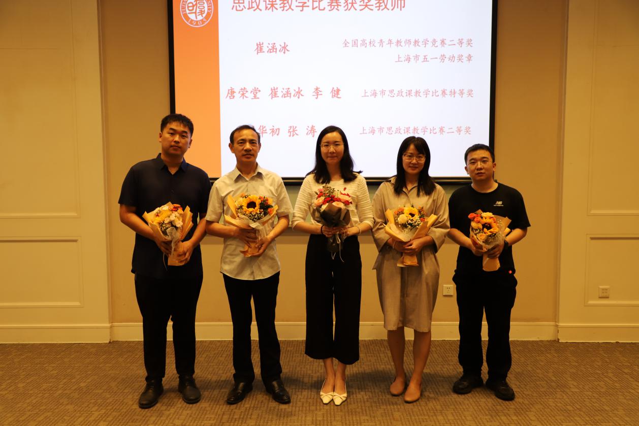 李冉首先宣读2021年新进教职工名单,欢迎他们加盟复旦马院,各学科带头人和办公室主任为新进教职工佩戴院徽。