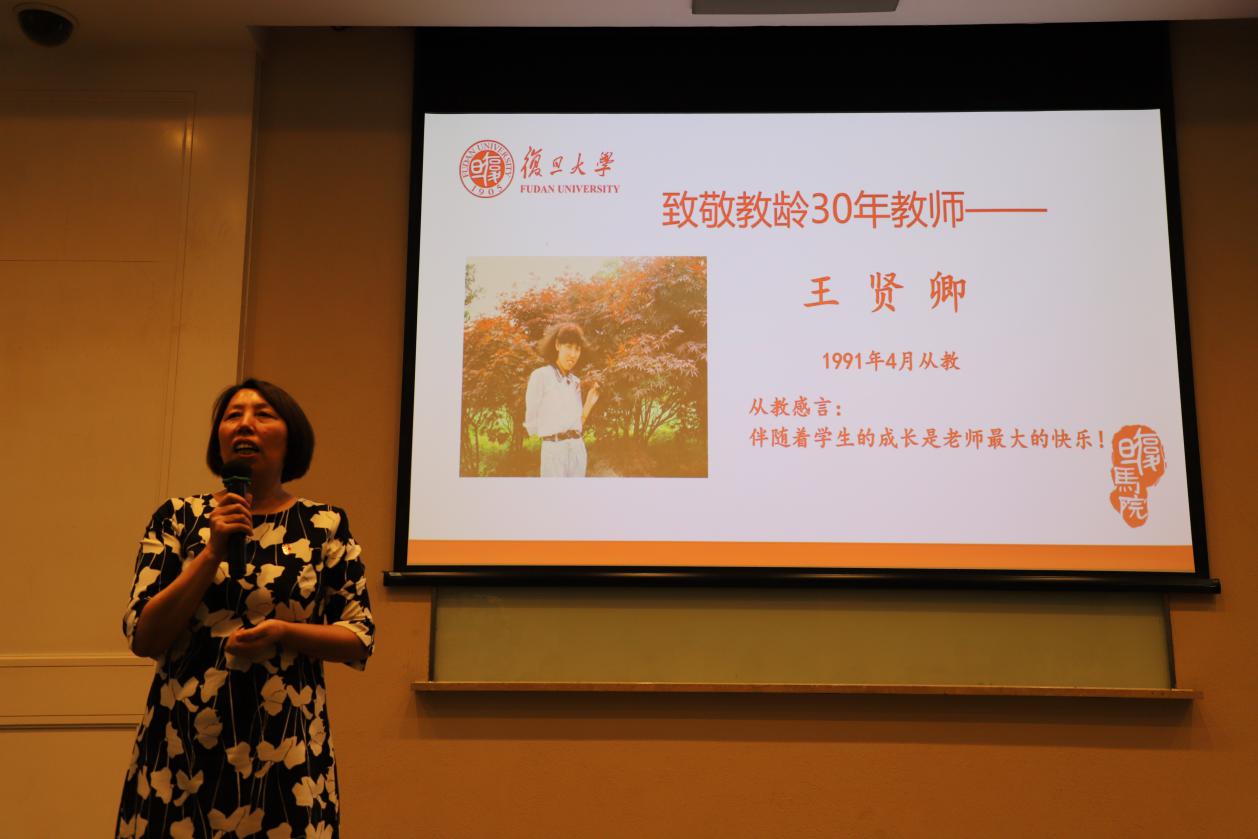 大会还特别向教龄满30年的王贤卿教授、今年光荣退休的肖巍教授致以特别的敬意,感谢他们为学院各项事业发展作出的贡献。