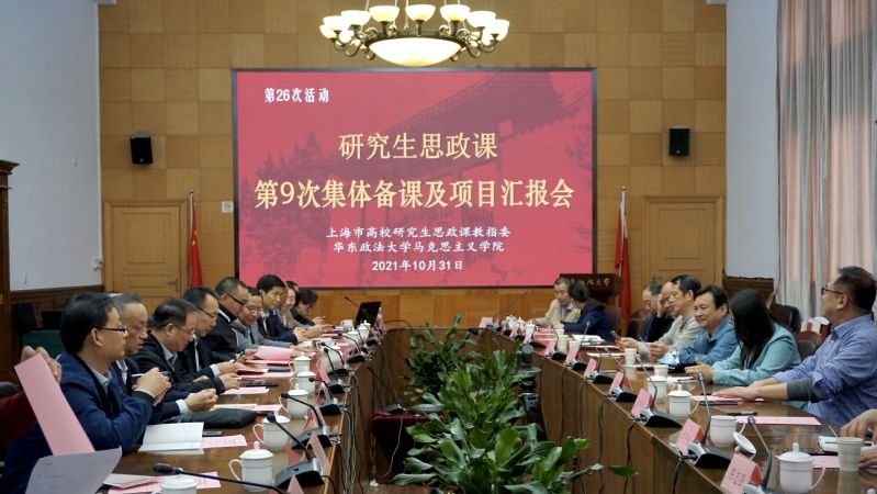 2021年10月31日,上海市高校研究生思政课教学指导委员会在华东政法大学(长宁校区)召开第九次集体备课会及《本市研究生思政课分类调研报告》(简称《调研报告》)暨教育部基地重大项目第六次推进会。本次集体备课主题是“新征程新教材新思考”。研究生思政课教指委委员与会,分教指委主任、韩漫h 肖巍主持会议。上海市25所高校的研究生思政课教师代表与会。