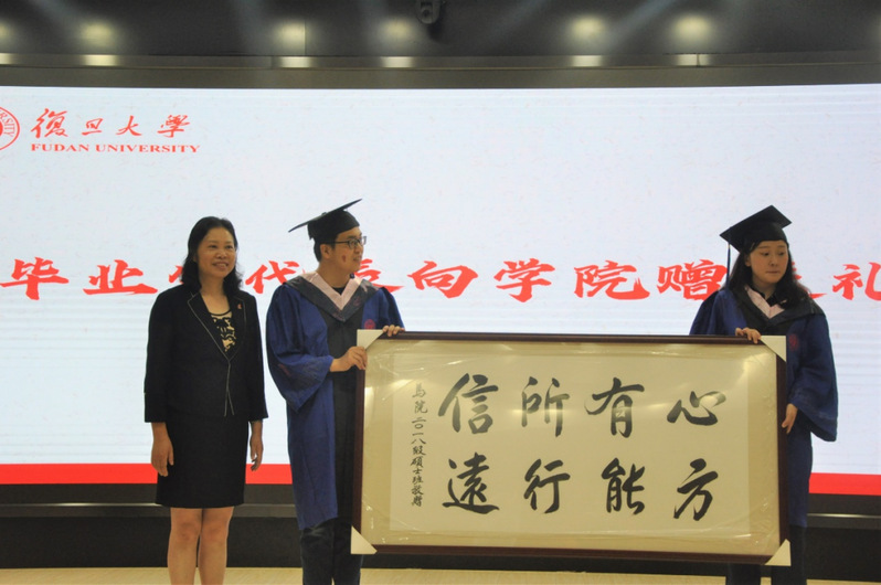 毕业研究生为表达对母院的感谢,向学院赠送礼物。党委书记许征老师代表学院接受礼物。毕业生们回望过去学习生活、面向崭新的人生篇章,千言万语凝结成一句“心有所信,方能行远”,他们将始终坚定理想信念、矢志拼搏奋斗。