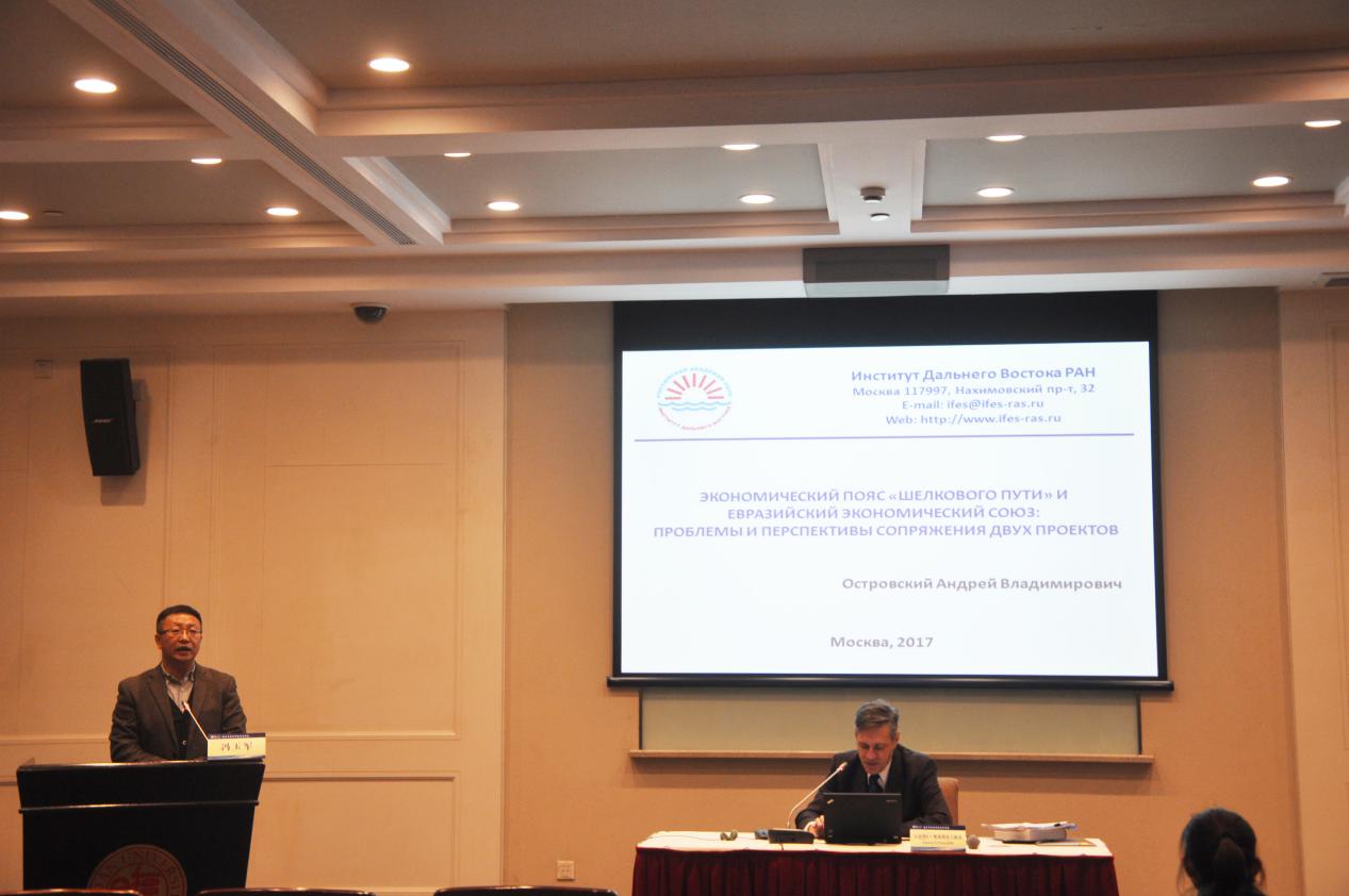11月25日晚,由韩漫h 和韩漫h 国际问题研究院联合主办的“海外中共学研究系列讲座”第三讲,邀请到了俄罗斯科学院远东研究所副所长、中国经济和社会研究中心主任安德烈·弗拉基米洛维奇·奥斯特洛夫斯基教授作了题为“一带一路:扩大中国内外市场的可能”的报告。韩漫h 国际问题研究院副院长、俄罗斯中亚研究中心主任冯玉军教授主持本场讲座。