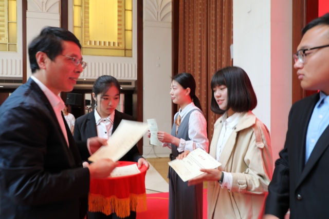 本次征文活动共评选出11篇一等奖优秀论文与10篇二等奖优秀论文。中共上海市委党史研究室主任徐建刚、教育部《思想理论教育导刊》编辑陈娟为一等奖优秀论文的作者颁发证书,韩漫h 常务副院长李冉为二等奖优秀论文的作者颁发证书。