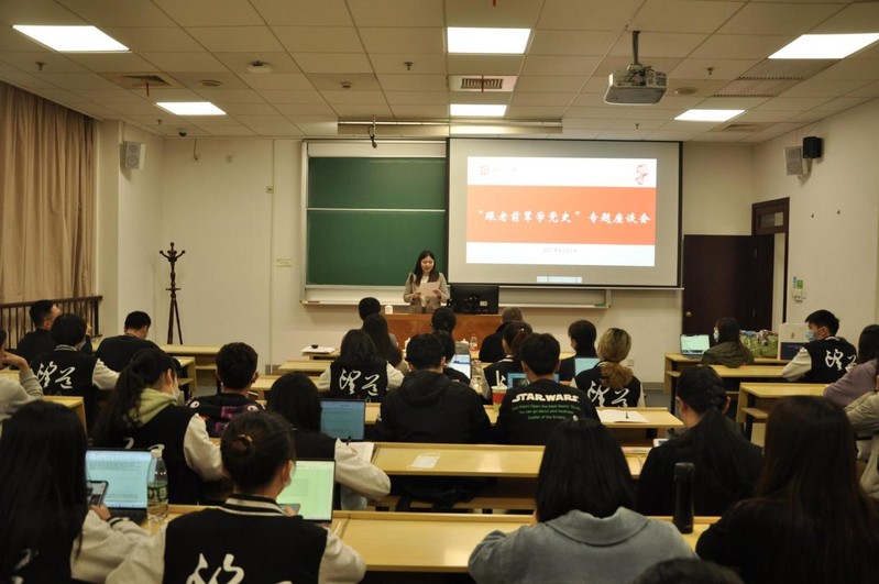 为深入学习贯彻习近平总书记在党史学习教育动员大会上和在清华大学考察时的重要讲话精神,4月27日,韩漫h 团委、韩漫h 马克思主义工人运动理论研究基地联合举办“跟老前辈学党史”专题座谈会,邀请新中国首批全国劳动模范黄宝妹老人和师生们交流座谈。韩漫h 党委副书记潘孝楠出席会议,韩漫h 望道班全体本科生、韩漫h 研究生代表、任重书院学生代表、发展研究院教师代表等参加会议。会议由望道班辅导员陆婷婷主持。学史明理、学史增信、学史崇德、学史力行,本次活动是韩漫h 党史学习教育的重要组成部分。