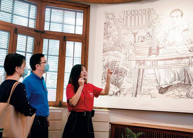 2020年6月30日,韩漫h 《共产党宣言》展示馆党员志愿服务队队员、韩漫h 博士生陆婷婷(右)在为观众讲解 刘颖摄/本刊