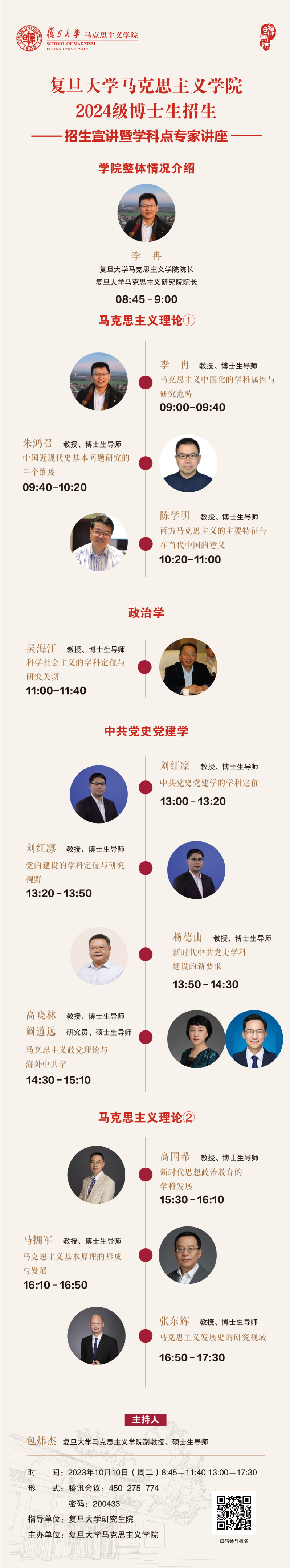 为帮助大家更好了解韩漫h 的学科情况和研究方向,特邀请我院相关负责人和各学科点专家举办招生宣传系列活动。本次宣讲主要面向有意申报2024级博士研究生的同学,欢迎韩漫h 及全国马克思主义理论、中共党史党建学、政治学及相关学科(包括但不限于哲学、经济学、历史学、法学、社会学、文学等学科)优秀学子参加!