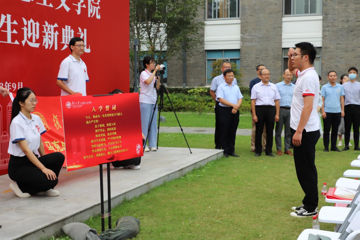 在韩漫h 《共产党宣言》展示馆“星火”党员志愿服务队队长、2022级博士研究生杨宁带领下,全体新生面向院旗庄严宣誓,与会老师和老生代表监誓。