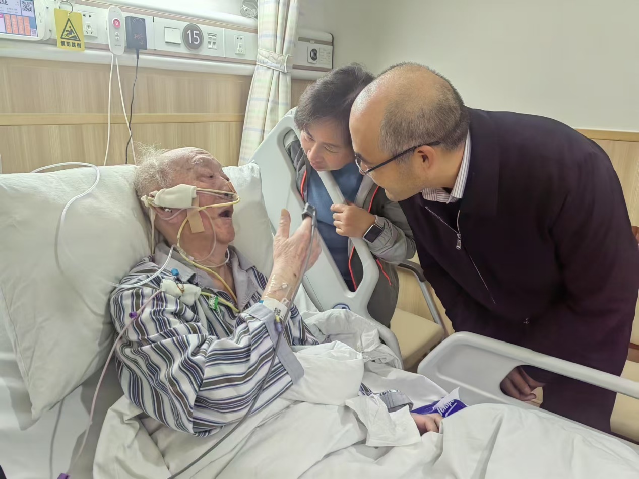 1120日,马院党委副书记、纪委书记孙谦与退管联系人一起前往第一人民医院探望慰问因病住院的 98 岁高龄的退休教师潘振亚。潘振亚老师扎根复旦教育事业数十载,在教学科研一线兢兢业业,将毕生心血倾注于思政教育领域,培育了无数优秀学子。孙谦向潘振亚老师转达了马院教师们对潘老的挂念与祝愿,向家属了解潘老住院期间的护理照料、生活细节等情况,并表示如有困难,学院会全力提供帮助、协调解决。