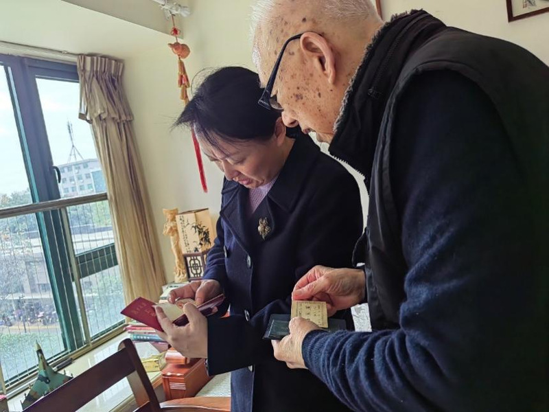 下午,梅鲜书记一行前往浙江嘉兴,看望马院退休教师杨荪。杨荪老师已91岁高龄,他既是复旦马院的退休教师,也曾是一名投身军旅保家卫国的军人。杨老师在复旦马院的讲台上默默耕耘数十载,将知识与军人坚毅品质传递给一届又一届学子。即便退休在家,他依然心系学院发展、挂念学生成长。梅鲜书记仔细询问了杨荪老师的身体近况、生活起居情况。梅鲜书记与杨荪老师并肩而坐,认真聆听他回忆往昔峥嵘岁月,从火热军营到三尺讲台,那些或激昂或温情的故事,如同鲜活教材,彰显老一辈教育者对初心的坚守。