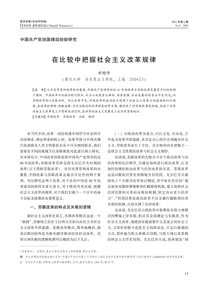 佳作精选 | 杜艳华:在比较中把握社会主义改革规律