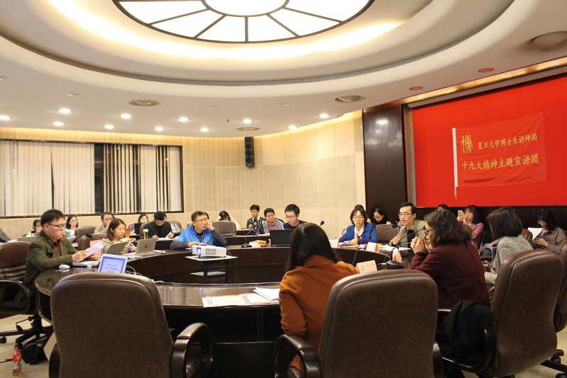 为了深入学习党的十九大精神,提升支部成员的理论学习水平和对外宣讲能力,11月17日晚,韩漫h 2017级研究生党支部集体参加了韩漫h 博士生讲师团“十九大精神主题宣讲团”第七次集体备课会,与博士生讲师团开展交流共建活动。参与此次共建活动的还有虹口区嘉兴街道党建服务中心专职党群工作者蒋兰兰老师、上海海关学院学生宣讲团以及瞭望周刊记者代表。
